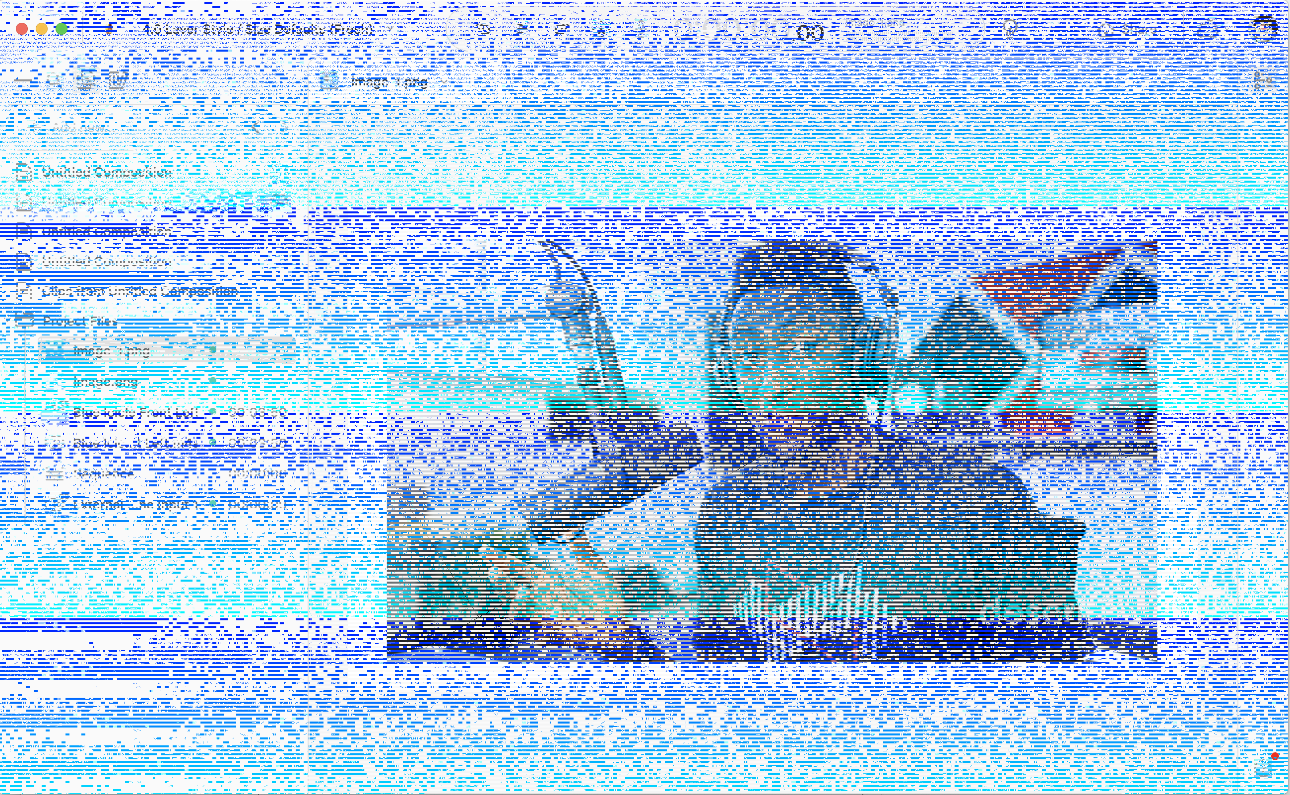 You may encounter an issue where the Descript window shows scrambled text and a series of blue or cyan-colored horizontal lines across the window.