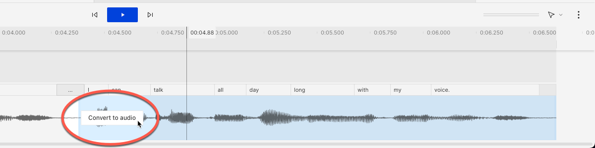 - Locate your AI voice clip in the Timeline at the bottom of the editor.